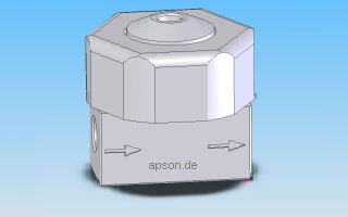 Im Normal-Fall bzw. Normal-Modus ergeben sich der Ein bzw. der Ausgang gemäß Pfeilrichtung. Für Sonder-Anwendungen mit höheren Arbeitsdrücken kann das APSON Rücklauf-Steuerventil BCV-2011-P auch im Invers-Modus betrieben werden (Ein- bzw. Ausgang entgegen der Pfeilrichtung).