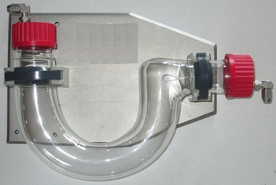 Achtung: Bei Arbeiten am oder in der Nähe des Glas-Siphons ist Schützausrüstung (Schutzbrille, Schutz-Handschuhe, usw.) zu tragen! Jegliche unverhältnismäßige mechanische Gewalteinwirkung am Glaskörper ist zu vermeiden!