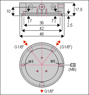 Steuerluft-Anschluss: Bohrung am Gehäusedeckel, mit M5 Gewinde